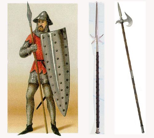 中世纪欧洲骑士盛行,因此马上冲击挥刺会用到很多的长枪和铁戟,作为噩梦一般的存在。在长达千年的历史中,工匠们生产和制作了很多实用并且精美的武器。最早的时候,只是在长长的木棍上按上尖尖的铁刺,后来发展为分叉、枪柄有皮革和斧状利刃的豪华武器。